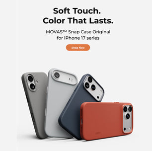 Protect your iPhone 17 with the MOVAS™ MagSafe Snap Case. Slim, Vegan leather, 3ft drop protection & MagSafe-ready. Available now in Qatar. Ultra-thin (2.3 mm) & feather-light (~34 g) Premium...