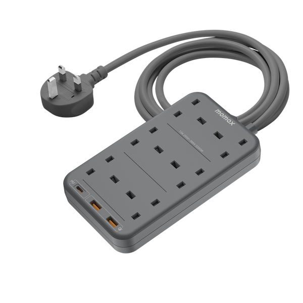 US12UK is a 6-outlet power strip with 2 QC 3.0 USB ports and 1 PD3.0 USB-C port. It provides high-speed charging performance and enable fast charging for your devices. The dual-rows design can help you save space at your home. It can offer stable and fast power output for up to 9 devices at the same time.