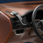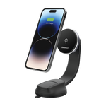 Charges your phone wirelessly and snap onto the mount with perfect magnet alignment. It can rotate 360 degrees and has a soft light for easy installation at night. It works with iPhone 12-14 series and Qi-compatible smartphones.