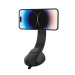The suction cup mount comes with an adjustable arm for added stability when mounted on the dashboard.