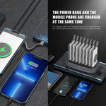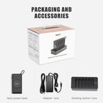 | Output | Each Power Bank: USB-C: 5V/3A, 9V/2.22A, 12V/1.67A USB A1: 5V/4.5A 5V/3A, 9V/2A/12V/1.5A USB A2: 5V/3A Wireless: 5W,10W,15W Charger: (5V/2A)*3, QC 18W*1 |