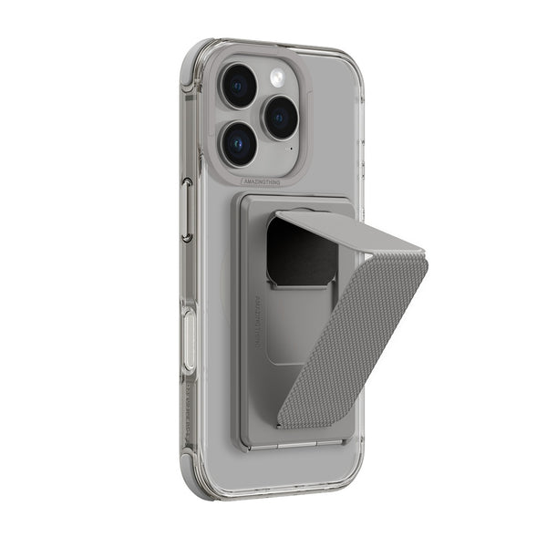 The integrated multifunctional grip strap / phone stand / protection strap makes holding your phone simpler and more secure, allowing you to take better photos, navigate with ease, and handle your day - all with one hand.
