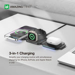 AT Explorer Pro 3-in-1 PD 15W portable wireless charger in Qatar. Fast wireless charging for phone, AirPods & watch with 1.2m USB-C cable.