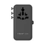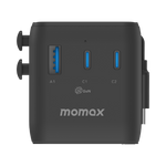 MOMAX 1-WORLD2+ 100W 4 PORT DUAL AC TRAVEL ADAPTOR WITH BUILT-IN CABLE