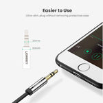 Slim 3.5mm stereo audio cable allows the 3.5mm stereo jack to be easily plugged into your headphone jack without taking off your slim phone case. While if you are having a bulky protective case, please take it off before plugging the audio cable.
